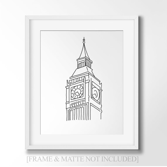 Big Ben London England Line Art Dessin Minimaliste D Art De Mur