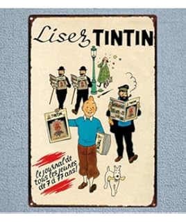 Hmmy Plaque Vintage En Fer Avec Dessin Anime Tintin 30x20 Cm